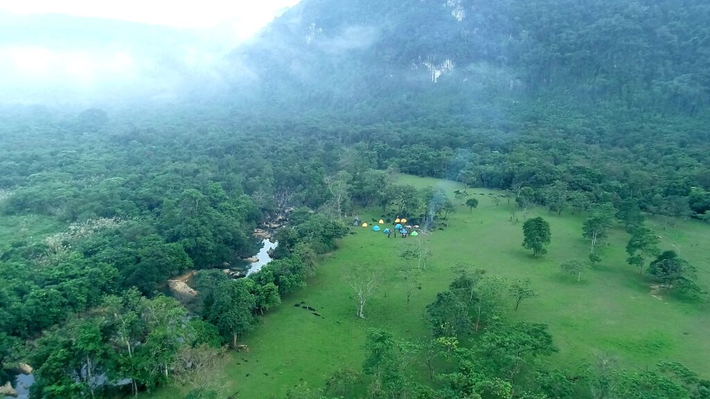 Khi đã vượt 5km hang Chà Lòi, bạn sẽ được đến với Bản Còi. Nơi sở hữu thung lũng tình yêu rộng lớn được bao quanh bởi sông suối và núi rừng. Khung cảnh nơi đây vô cùng bình yên và tuyệt vời, là địa điểm hấp dẫn và lý tưởng để bạn cắm trại qua đêm.